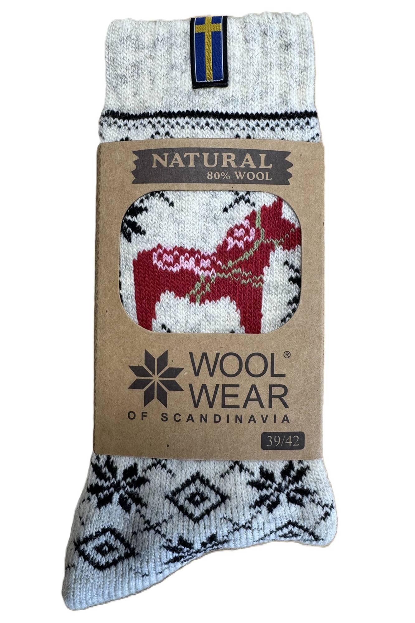 Kraftige og bløde uldsokker i smuk udgave med "HEST" (dalahest) ikon af 80% uld .